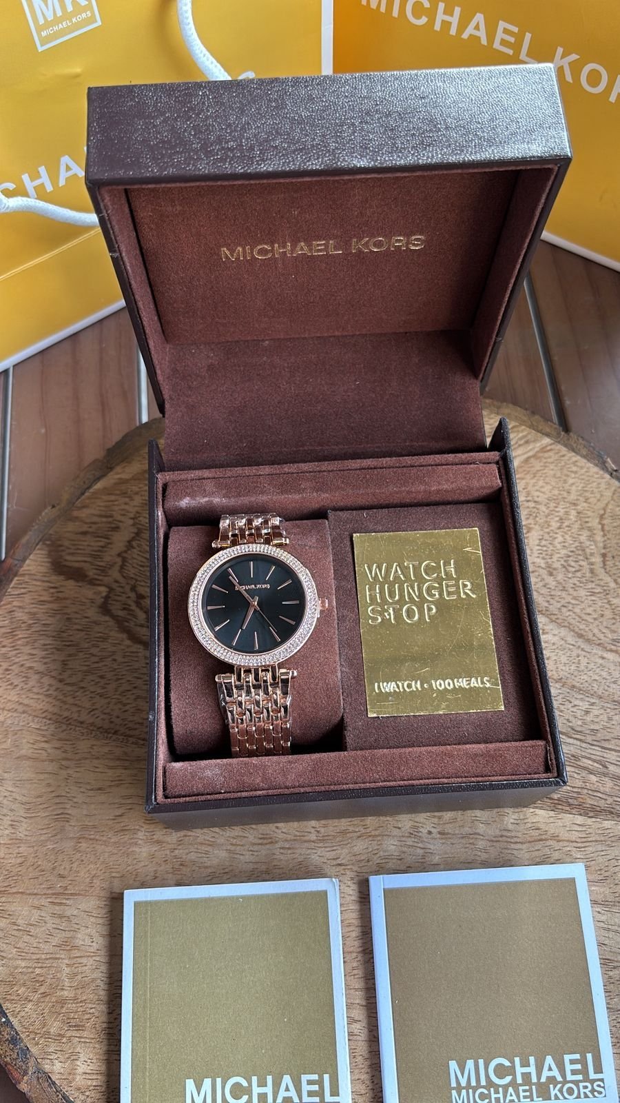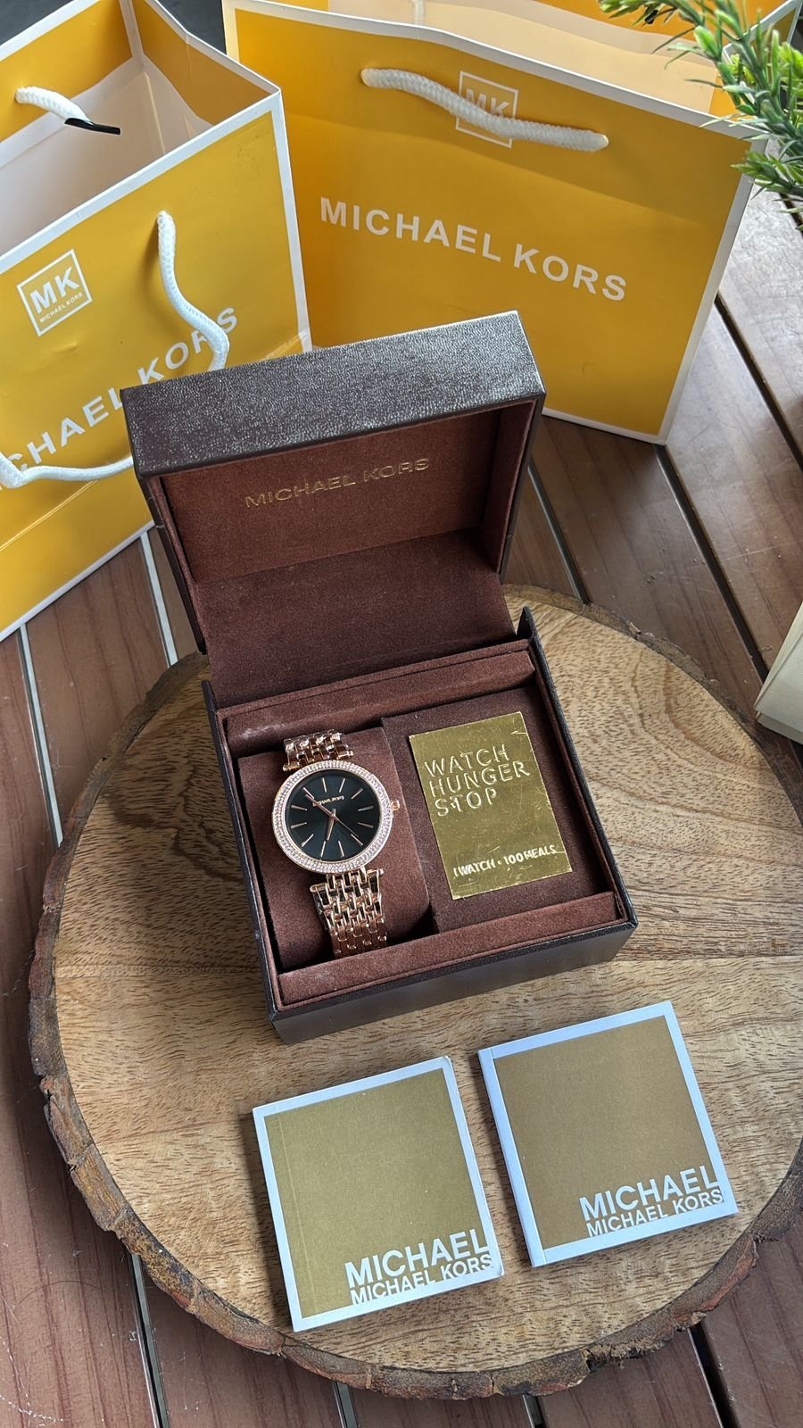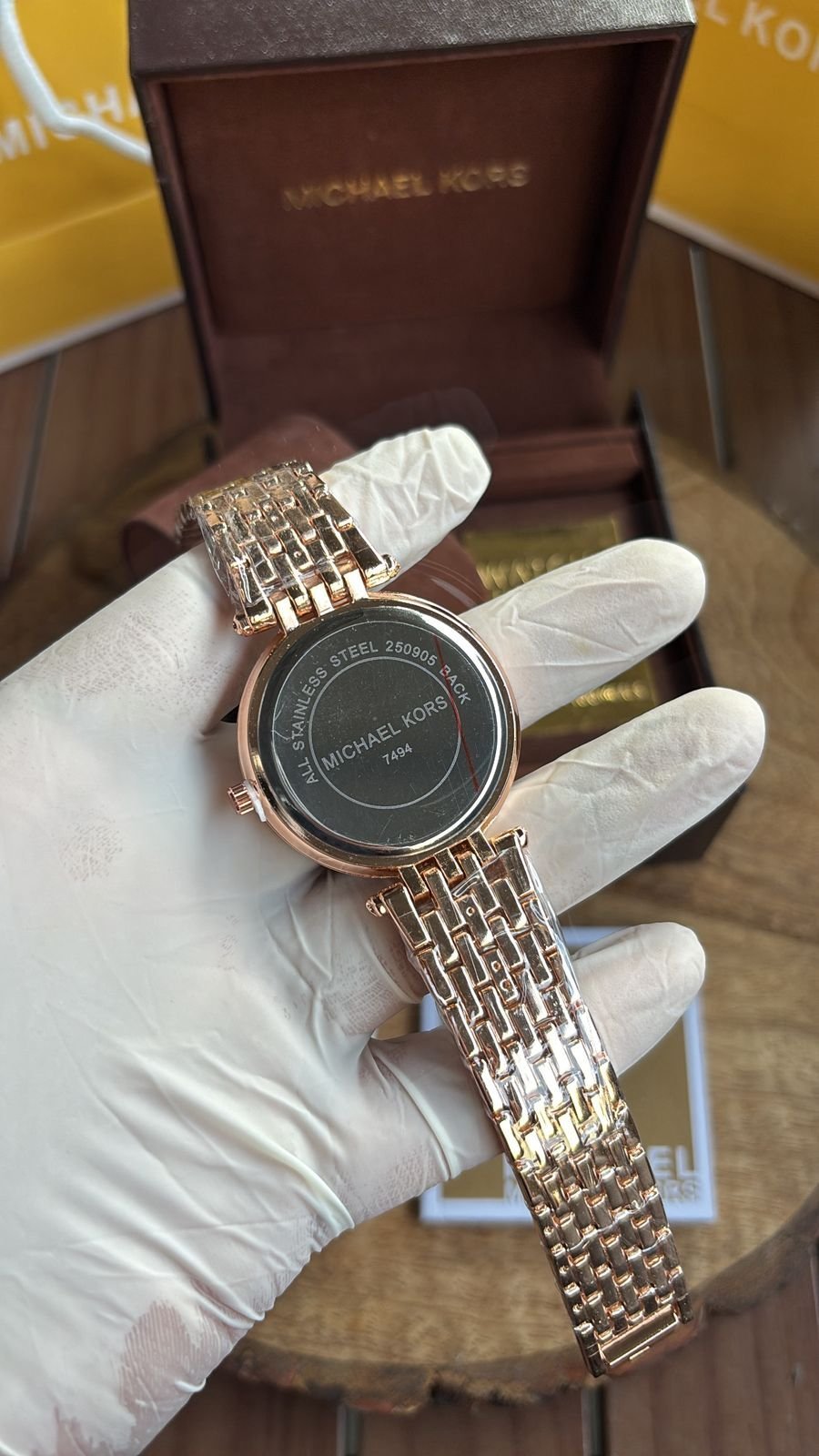 Authentic Branding: Genuine Michael Kors logos and markings on the watch, strap, and packaging.