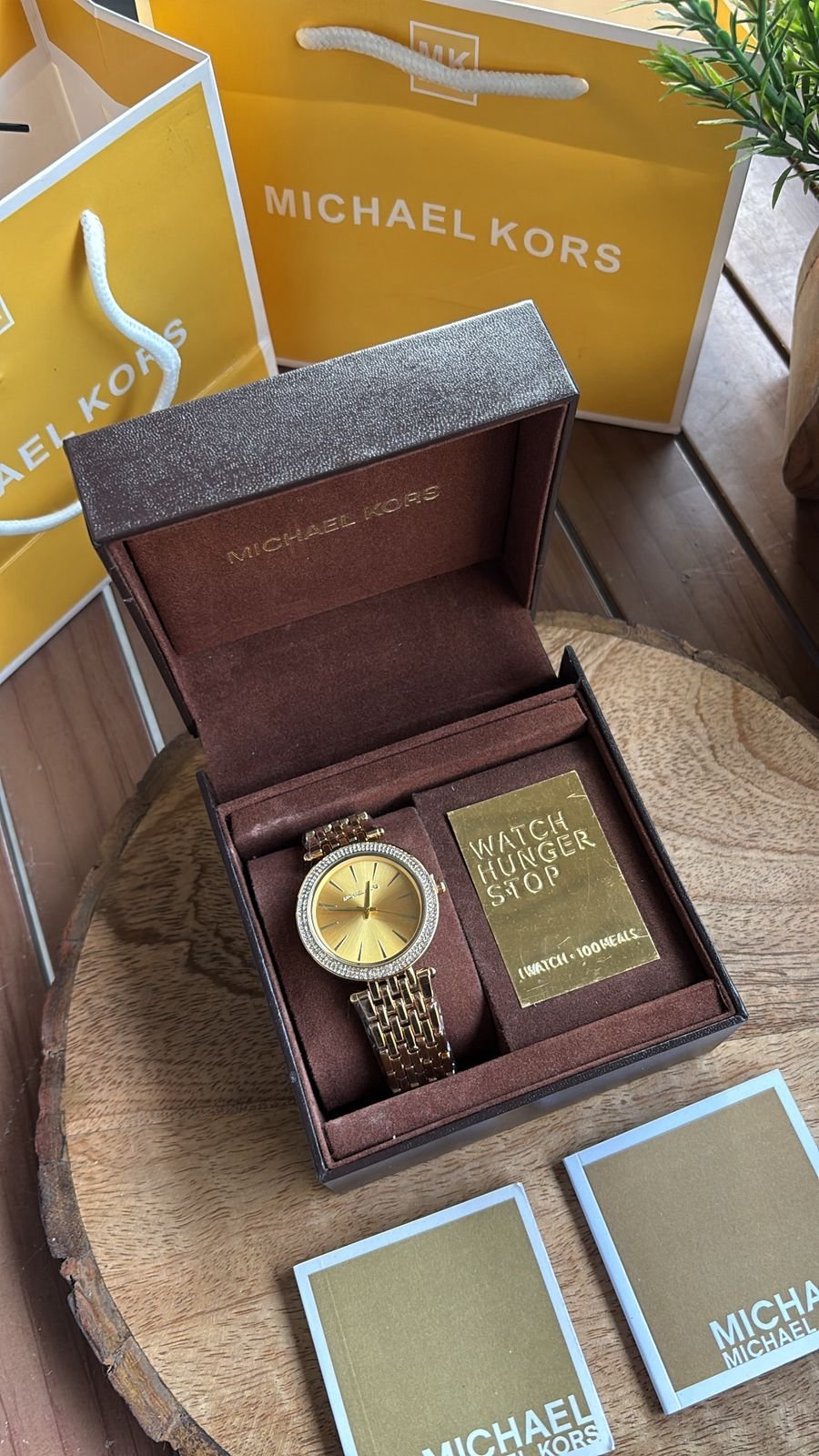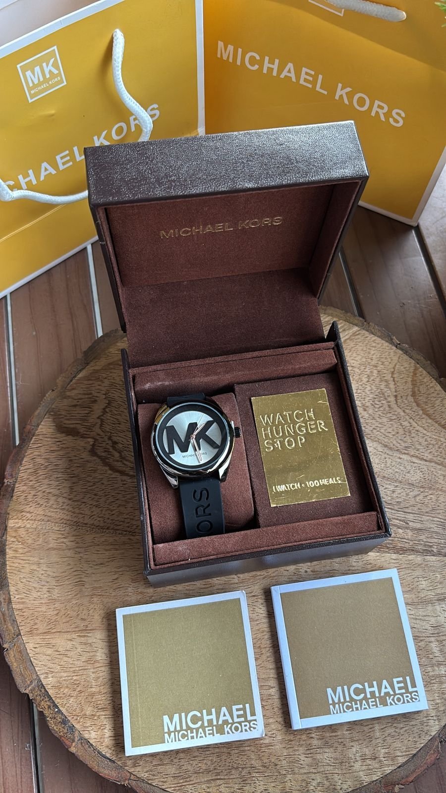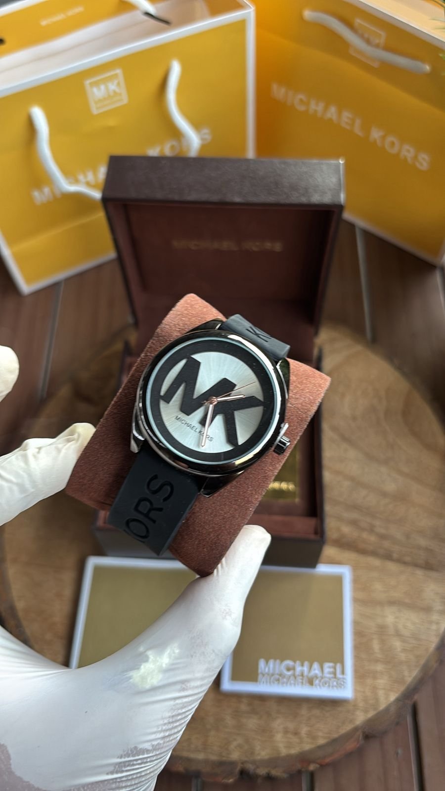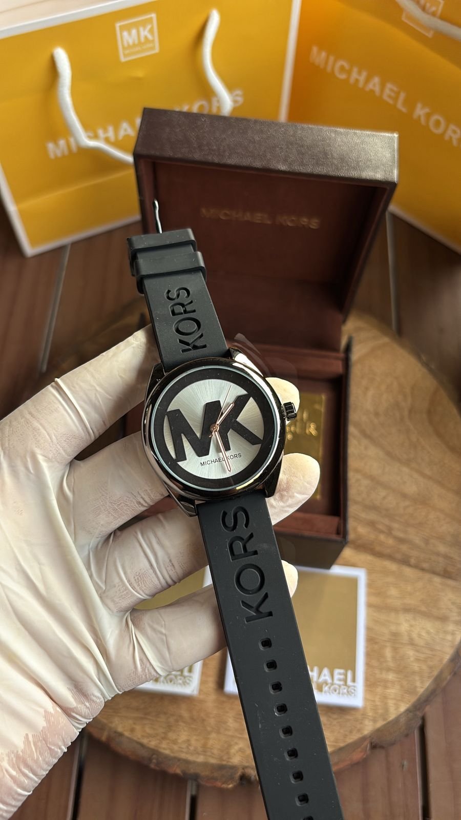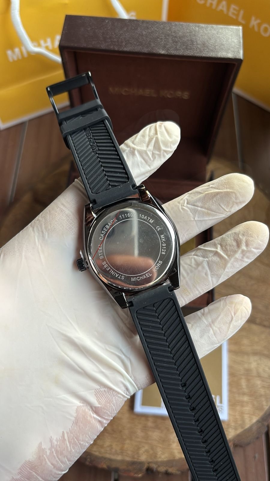 Authentic Branding: Genuine Michael Kors logos and markings on the watch, strap, and packaging.